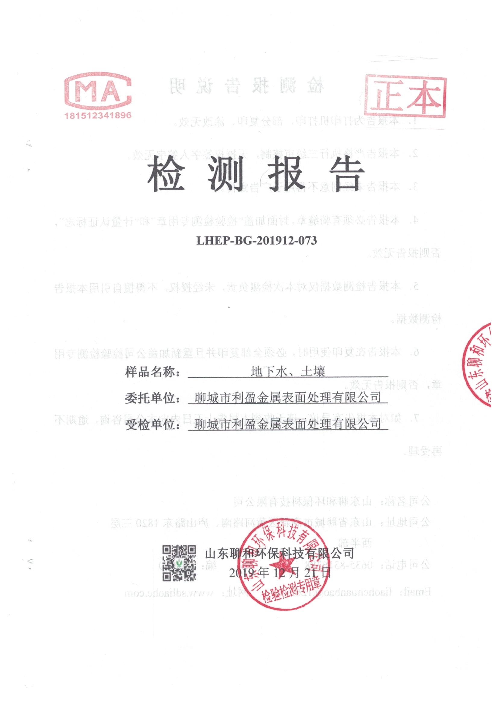 聊城市利盈金屬表面處理有限公司例行檢測(cè)報(bào)告20191221