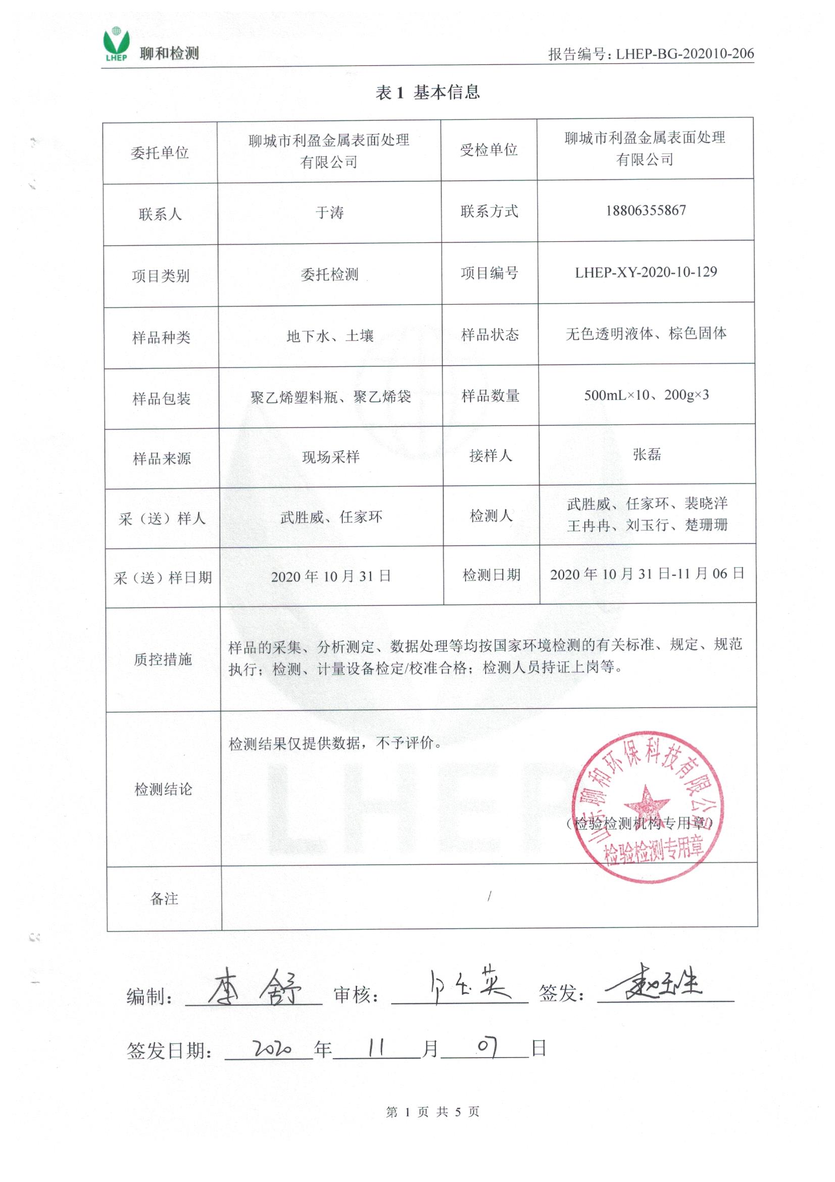 聊城市利盈金屬表面處理有限公司例行檢測(cè)報(bào)告20201107