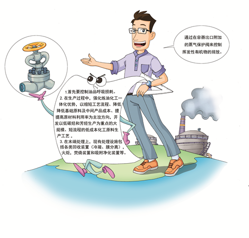 首先要控制油品呼吸損耗。呼吸損耗是溫度變化使容器產(chǎn)生“吸進(jìn)和呼出”而導(dǎo)致的揮發(fā)性有機(jī)物損耗,可通過(guò)在容器出口附加的蒸氣保護(hù)閥來(lái)控制揮發(fā)性有機(jī)物的排放。