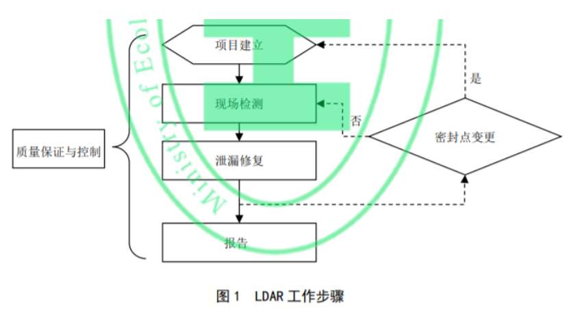 《指南》提到,首次開展LDAR工作包括但不限于項目建立、現(xiàn)場檢測和泄漏修復3個步驟。非首次開展LDAR工作包括但不限于現(xiàn)場檢測和泄漏修復2個步驟。企業(yè)應基于上述工作結(jié)果至少編制首輪報告和年度報告,各個步驟應符合相應的質(zhì)量保證與控制要求。若企業(yè)因開停工、檢維修以及改擴建等原因發(fā)生密封點變更的,應重新對變更部分進行建檔信息修訂,并開展現(xiàn)場檢測和泄漏修復工作。LDAR工作步驟見圖 1。項目建立、現(xiàn)場檢測和泄漏修復具體工作流程見附錄 A。人員現(xiàn)場作業(yè)應符合企業(yè)相關(guān)作業(yè)制度或規(guī)定,穿戴符合GB/T 11651及相關(guān)要求的個體防護裝備,涉及特殊作業(yè)的應按照 GB 30871 及企業(yè)制度要求,執(zhí)行特殊作業(yè)管理程序。泄漏維修前應對人員、設備及工作過程等進行安全條件評估,符合安全條件時方可開展工作。
